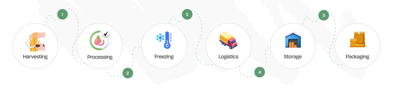 We supply a wide range of frozen fruits, vegetables, ready-to-eat mixes, dairy products, and flour mill products that are processed under strict international standards.