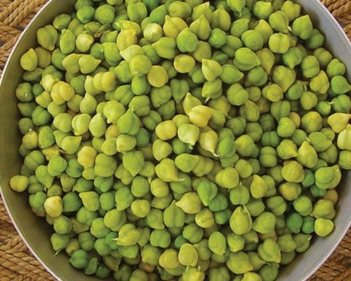 Frozen green chickpeas are whole, shelled beans, small and round in shape.